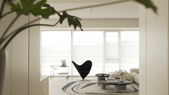 这是为美术生打造的270度环幕江景大平层,高楼层赋予的辽阔视野,江景成为空间的天然背景。