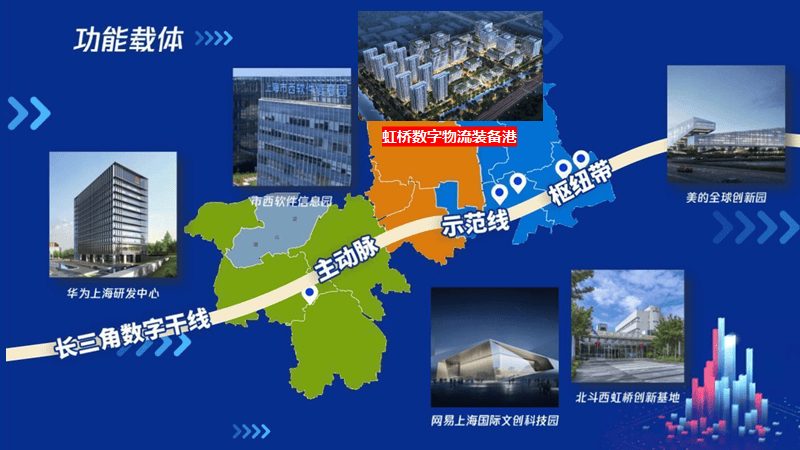 “虹桥智造园”、“虹桥数字谷”、“虹桥医创城”“虹桥生态湾”四大载体,总规划面积11.64平方公里。