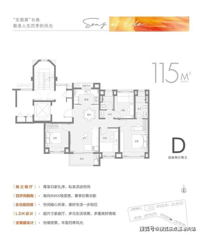 另一方面,建面约88-115㎡房型,做到了无连廊设计,电梯厅直接入户!
